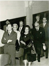 Al fondo un maestro de la Facultad de Derecho de la Universidad de Guanajuato. De lentes Luis Rocha, el doctor Pascual Aceves Barajas y a su lado Rafael Aceves Barajas, -éstas tres personas fueron presidentes municipales de San Francisco del Rincón-, también están Ma. Eugenia Aceves de González y Matilde Aceves de Rocha, hermanas de su mamá Carmelita Aceves de Castanedo.